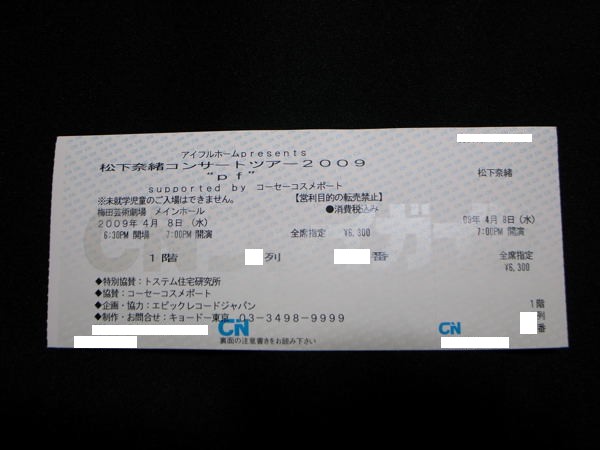 松下奈緒コンサートツアー2009 "pf" が正しかったんですね。。。。