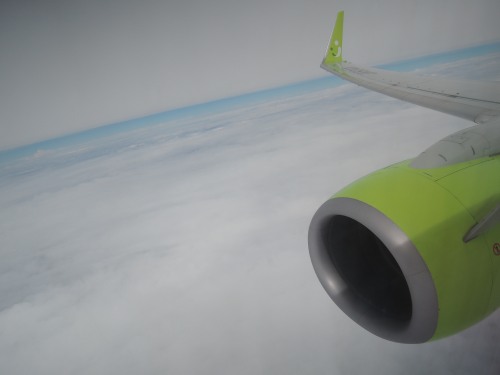 窓からは雲のみ。。。。