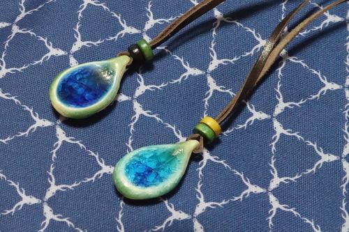 「川平のしずく」川平湾の砂と赤土、琉球ガラスを使った焼き物のアクセサリー