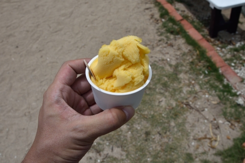 由布島マンタ浜にある浜辺の茶屋でマンゴージェラートを食す。。。。おいしかった。。。