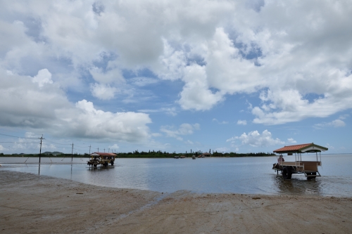 由布島入口到着、ここからは有名な浅瀬を渡る水牛車で由布島へ向かいます。