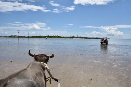 復路、由布島から西表島へ戻ったところから水牛車を眺める。。。。