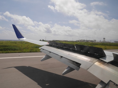 タッチダウン! 離陸待ちの飛行機が見えました。